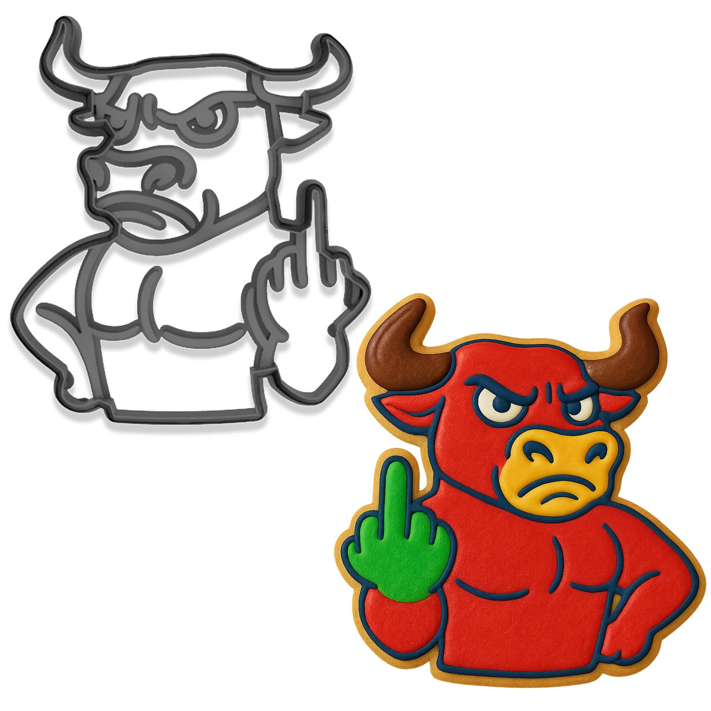 Angry Bull Middle Finger Cookie Cutter 4x3.4" for Baking Fondant Clay Gifts