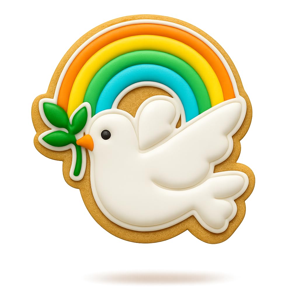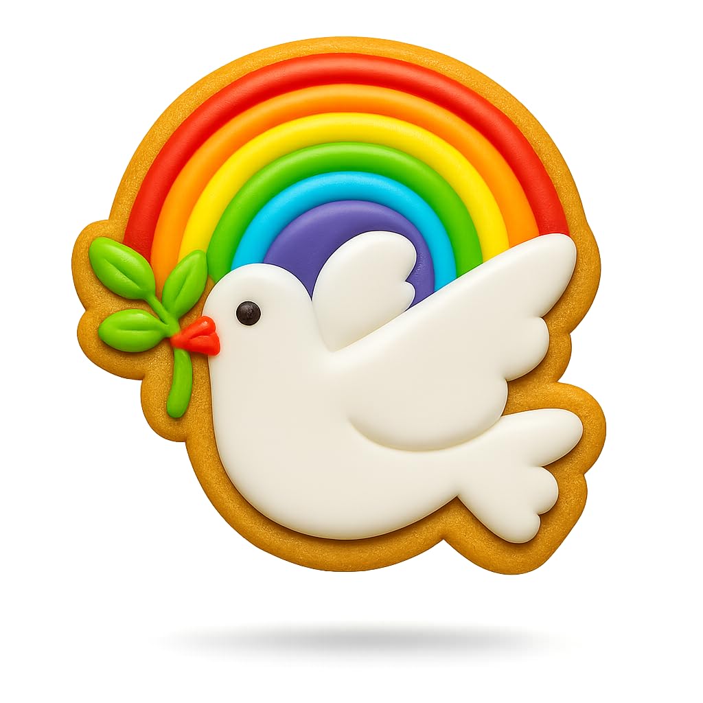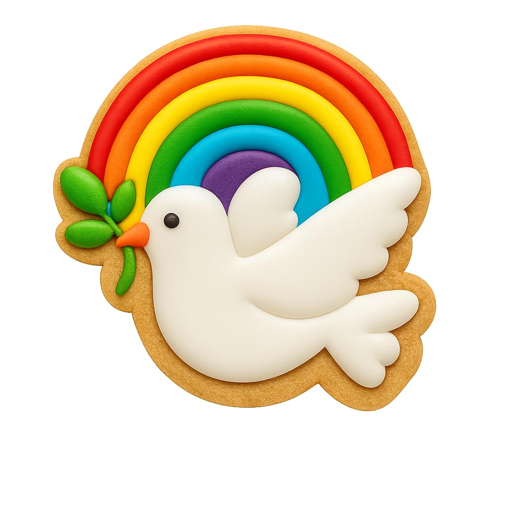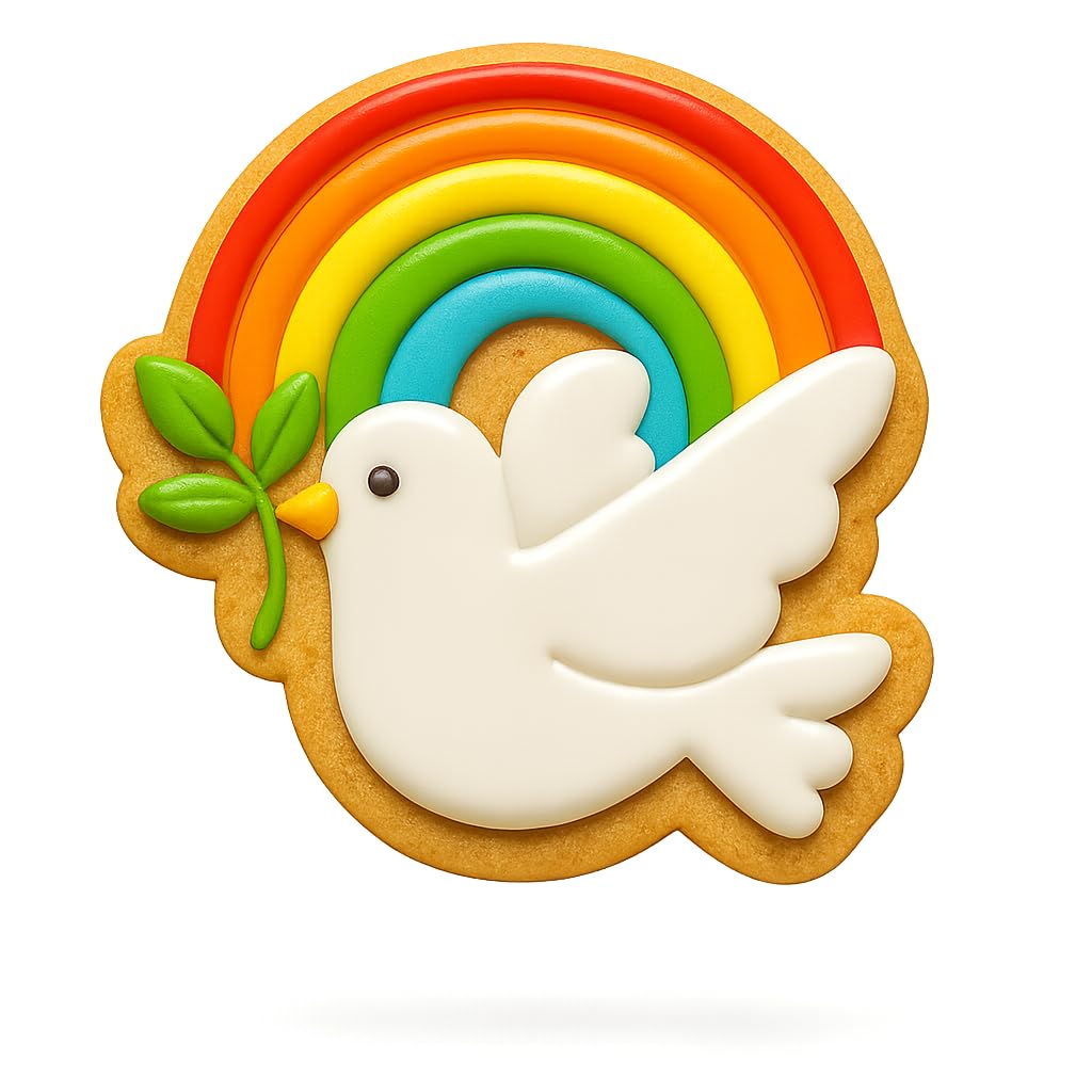 Color of the cookie cutter will be random and may differ from photos. Create heavenly treats with the Dove Rainbow Covenant Cookie Cutter's delightful design. Measuring 4x3.8", it's ideal for crafting precise shapes. Made from food-safe plastic, this cutter is perfect for non-raising cookie dough to capture every feather detail. Enjoy versatility as it molds cookies, fondant, or clay for various craft projects. Whether you're into baking tools, kitchen gadgets, or need a unique family fun activity, this is a perfect gift. For best results: Roll your dough to 5mm (1/5 inch) thickness, use non-raising dough for sharp details, and dip the cutter into flour before each cut to prevent sticking and ensure clean release. Hand wash only. Not dishwasher safe. Made in the USA.