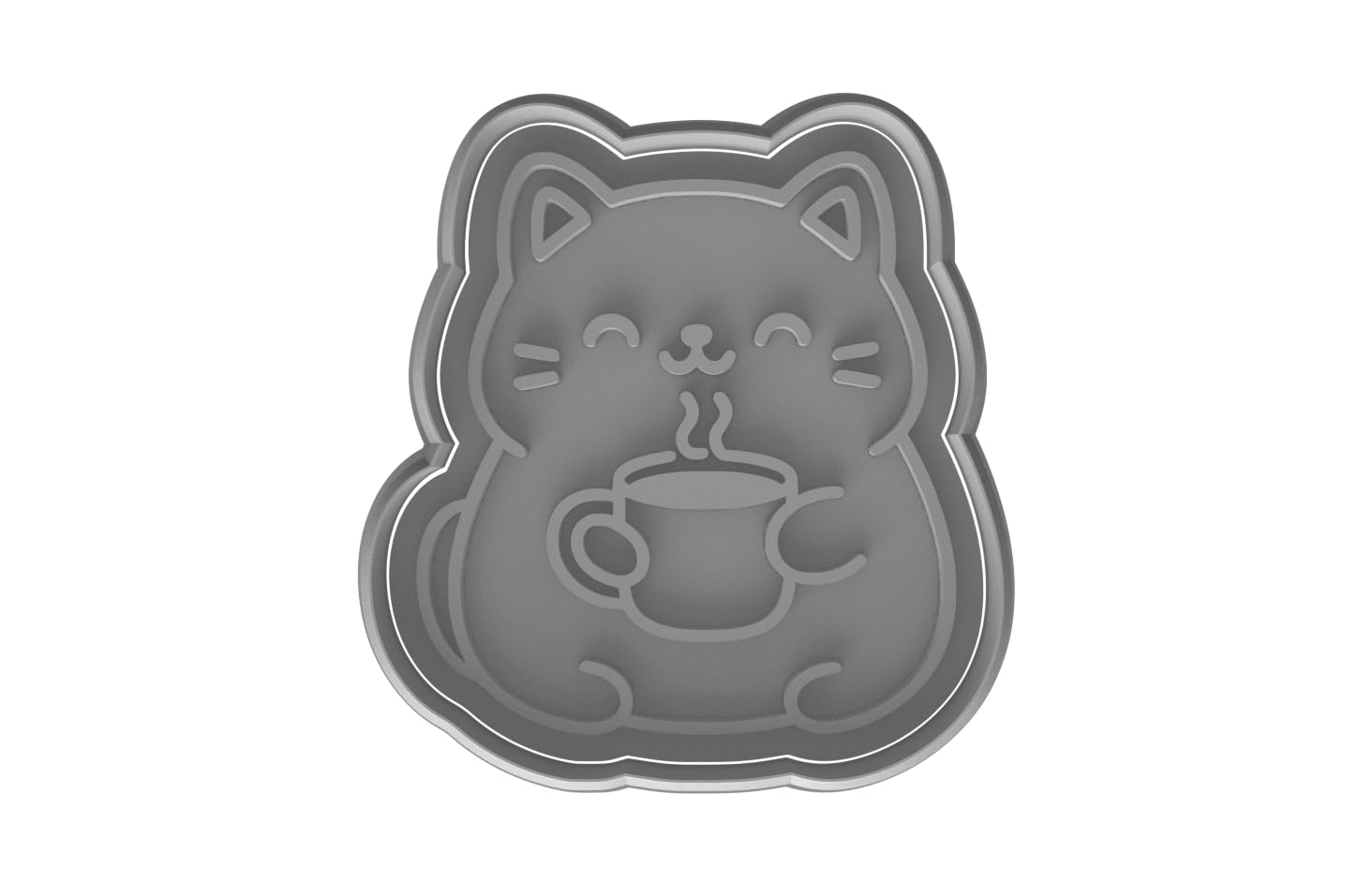 Color of the cookie cutter will be random and may differ from photos. Create the purr-fect cookies with our Kawaii Cat Holding Coffee Mug cutter. Measures 4x3.7 inches in playful design. Crafted from durable, food-safe plastic. Best used with non-raising cookie dough to capture fine details. Ideal for cookies, fondant, clay, and a variety of craft projects. Bring joy to baking with limited kitchen essentials, fun family baking tools, and the perfect gift for cat lovers. For best results: Roll your dough to 5mm (1/5 inch) thickness, use non-raising dough for sharp details, and dip the cutter into flour before each cut to prevent sticking and ensure clean release. Hand wash only. Not dishwasher safe. Made in the USA.