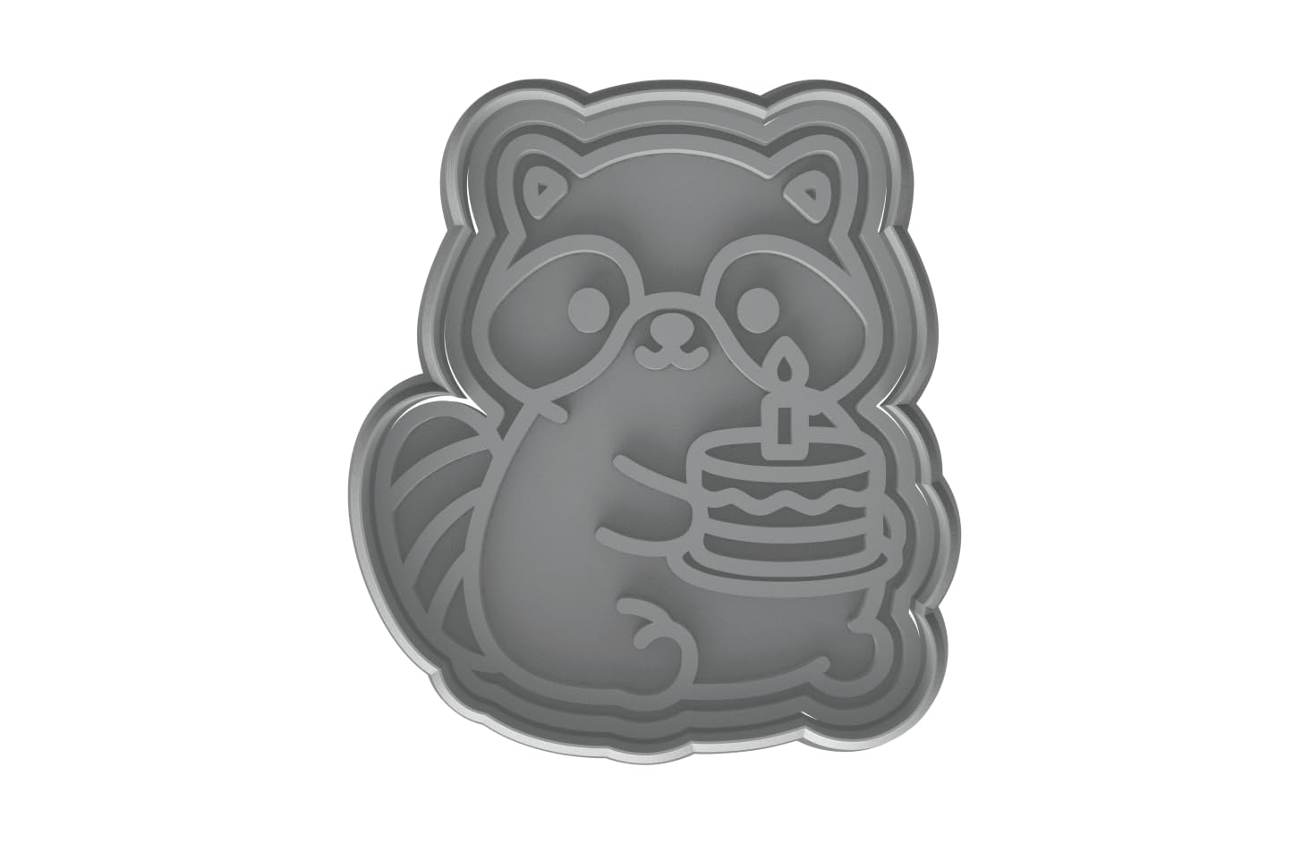 Kawaii Raccoon Holding Birthday Cake Cookie Cutter - 4x3.5" Fun Baking Design