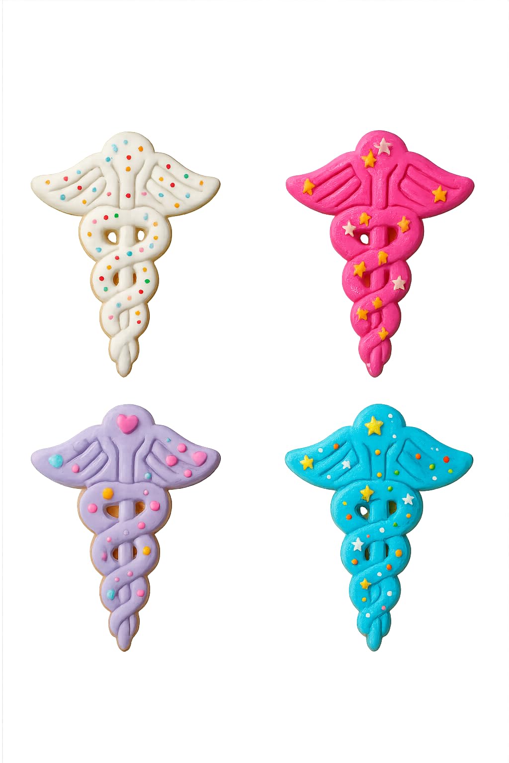 Color of the cookie cutter will be random and may differ from photos. Medical Caduceus Cookie Cutter & Stamp 4x2.5" for Baking & Fondant Clay Gifts Size: 2.5", 2.5 inch, 5 inch. A playful medical caduceus & 4x2.5" & clay gifts that keeps edges sharp and decorating space generous for beginner and pro bakers. Its sturdy wall depth helps dough release cleanly so shapes keep their edges. Made for birthday dessert tables, school bake sales and more. Compatible with sugar cookies, gingerbread, fondant, and soft craft materials like polymer clay and air-dry clay. Color cookie cutter will random differ from photos Bring touch magic your. Extra detail: Medical Caduceus & 4x2. For best results: Roll your dough to 5mm (1/5 inch) thickness, use non-raising dough for sharp details, and dip the cutter into flour before each cut to prevent sticking and ensure clean release. Hand wash only. Not dishwasher safe. Made in the USA.