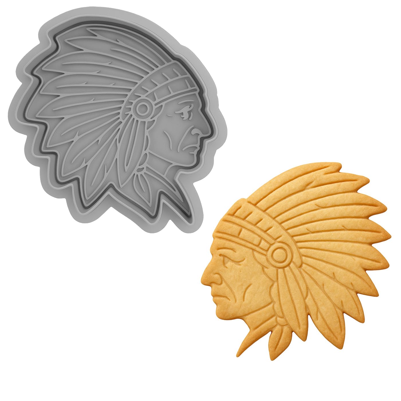 Native American Chief Cookie Cutter & Stamp 4x3.59" for Baking & Fondant Clay
