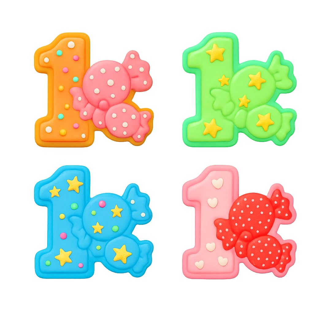 Color of the cookie cutter will be random and may differ from photos. Number 1 with Candy Design Cookie Cutter & Stamp 4x3.2" for Baking & Fondant Size: 3.2", 5 inch, 5mm. Cut crisp outlines every time with a number 1 candy design & 4x3.2" & that balances cute detail with dough-friendly simplicity. Use it to batch cookies fast without losing definition. Made for birthday dessert tables, school bake sales and more. Compatible with sugar cookies, gingerbread, fondant, and soft craft materials like polymer clay and air-dry clay. Color cookie cutter will random differ from photos sprinkle sweetness magic your. Extra detail: Number 1 Candy Design & 4x3. For best results: Roll your dough to 5mm (1/5 inch) thickness, use non-raising dough for sharp details, and dip the cutter into flour before each cut to prevent sticking and ensure clean release. Hand wash only. Not dishwasher safe. Made in the USA.