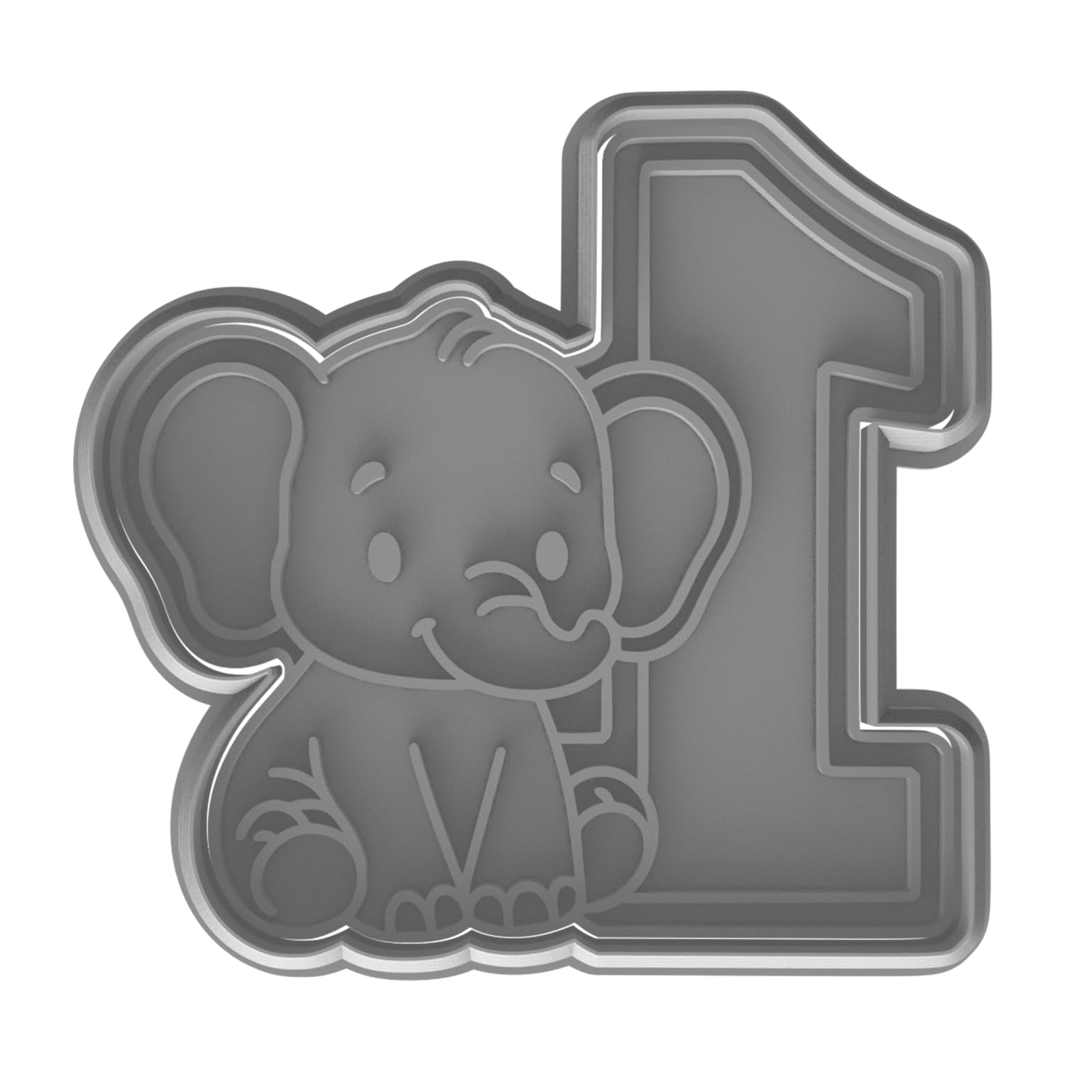 Number 1 with Elephant Cookie Cutter & Stamp 4x3.5" for Baking & Fondant Clay