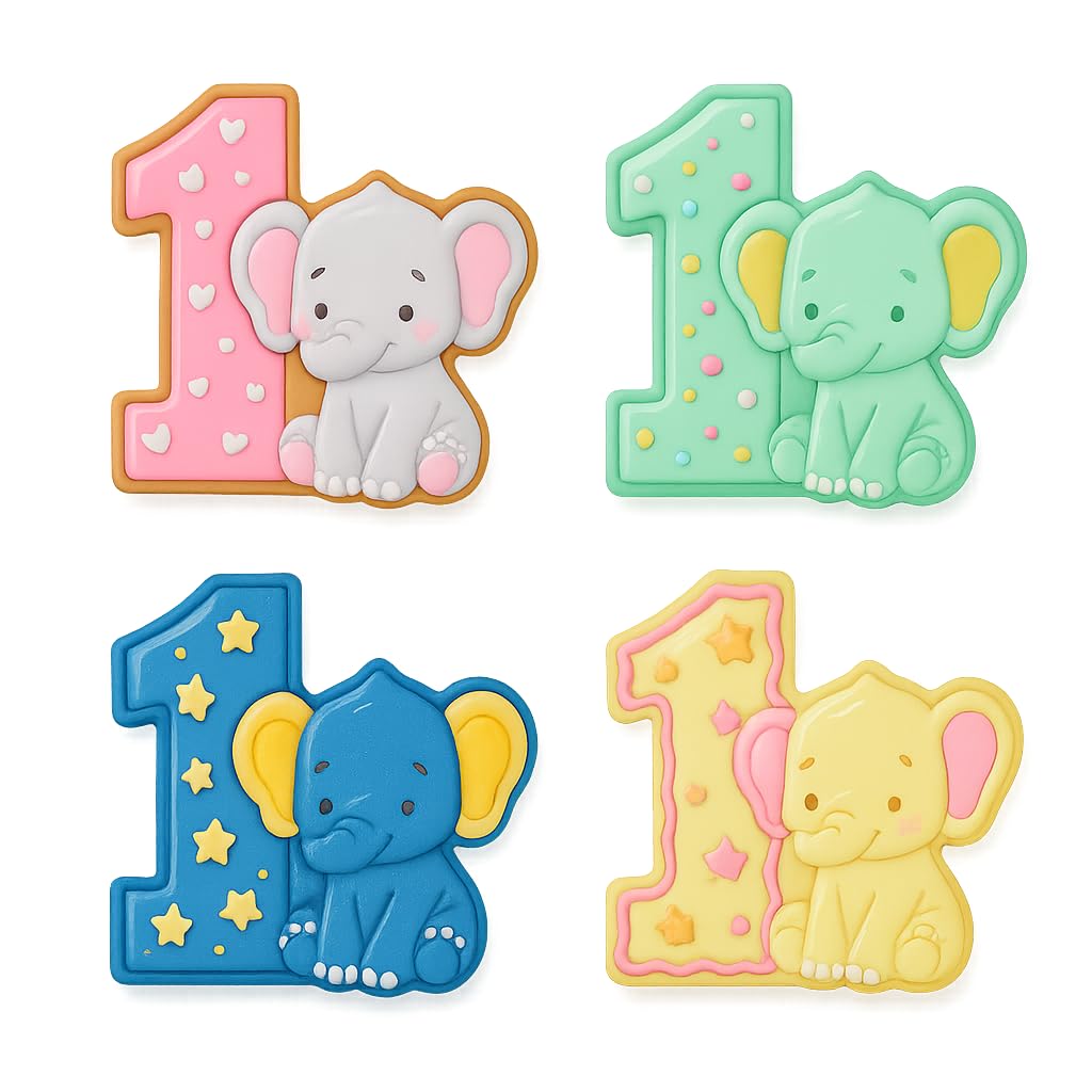 Color of the cookie cutter will be random and may differ from photos. Number 1 with Elephant Cookie Cutter & Stamp 4x3.5" for Baking & Fondant Clay Size: 3.5", 5 inch, 5mm. A playful number 1 elephant & 4x3.5" & clay that keeps edges sharp and decorating space generous for beginner and pro bakers. Use it to batch cookies fast without losing definition. Made for weekday treat boxes, school bake sales and more. Compatible with sugar cookies, gingerbread, fondant, and soft craft materials like polymer clay and air-dry clay. Color cookie cutter will random differ from photos Bring touch magic your. Extra detail: Number 1 Elephant & 4x3.5" & Clay inspo for holiday cookie tins, weekday treat boxes. For best results: Roll your dough to 5mm (1/5 inch) thickness, use non-raising dough for sharp details, and dip the cutter into flour before each cut to prevent sticking and ensure clean release. Hand wash only. Not dishwasher safe. Made in the USA.