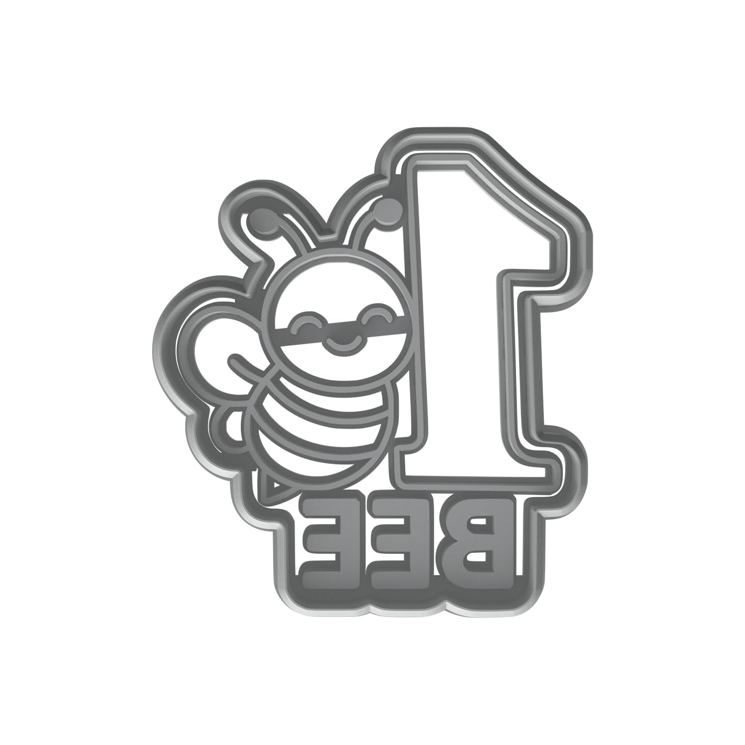 Number 1 with Smiling Bee Cookie Cutter & Stamp 4x3.5" for Baking Fondant Clay
