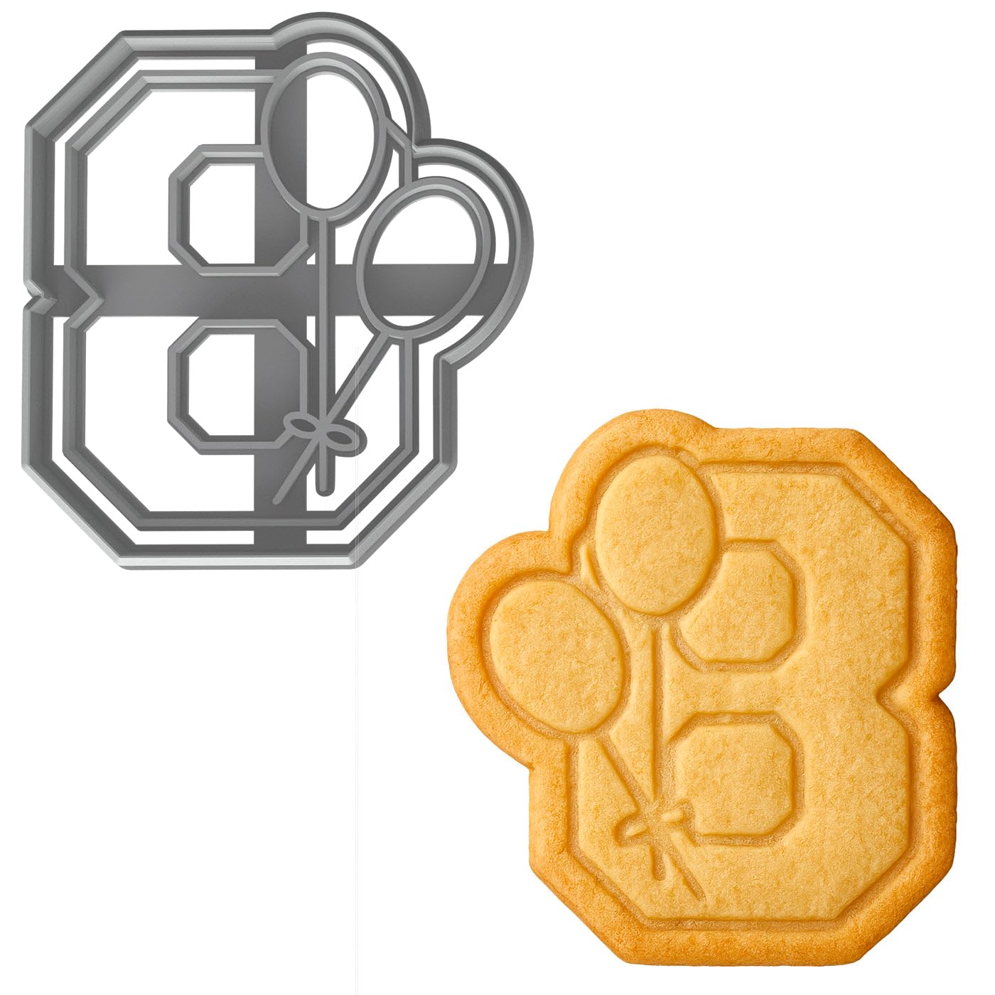 Number 8 with Balloons Cookie Cutter 4x3.63" for Baking & Fondant Clay Gifts