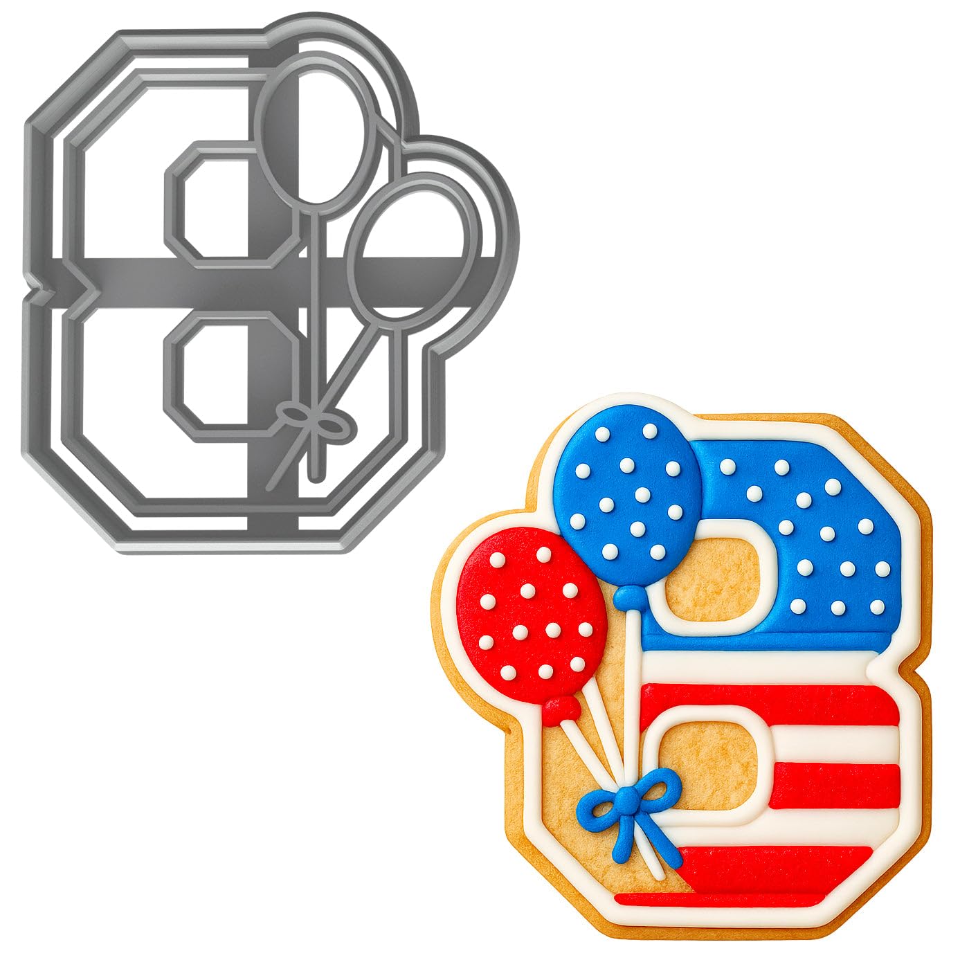 Color of the cookie cutter will be random and may differ from photos. Number 8 with Balloons Cookie Cutter 4x3.63" for Baking & Fondant Clay Gifts Size: 3.63", 3.63 inch, 5 inch. Number 8 Balloons 4x3.63" & Clay Gifts brings instant personality to your bakesclean lines, bold imprint, and a silhouette that reads at a glance. Generous interior space makes flooding and piping straightforwardeven for kids. Perfect for holiday cookie tins, plus weekday treat boxes. Compatible with sugar cookies, gingerbread, fondant, and soft craft materials like polymer clay and air-dry clay. Color cookie cutter will random differ from photos Make birthdays extra special. Extra detail: Number 8 Balloons 4x3. For best results: Roll your dough to 5mm (1/5 inch) thickness, use non-raising dough for sharp details, and dip the cutter into flour before each cut to prevent sticking and ensure clean release. Hand wash only. Not dishwasher safe. Made in the USA.