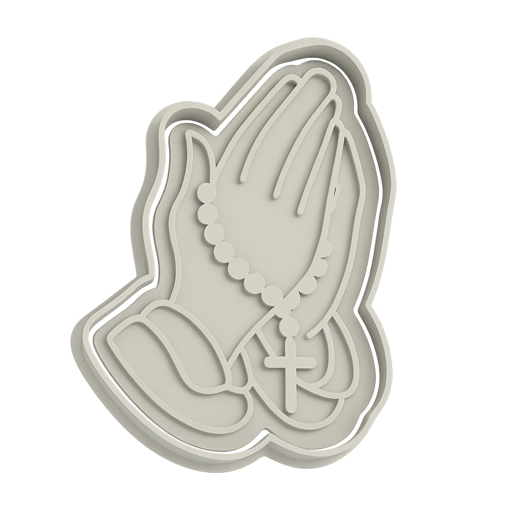 Praying Hands with Rosary Cookie Cutter & Stamp 4x2.8" for Baking & Fondant