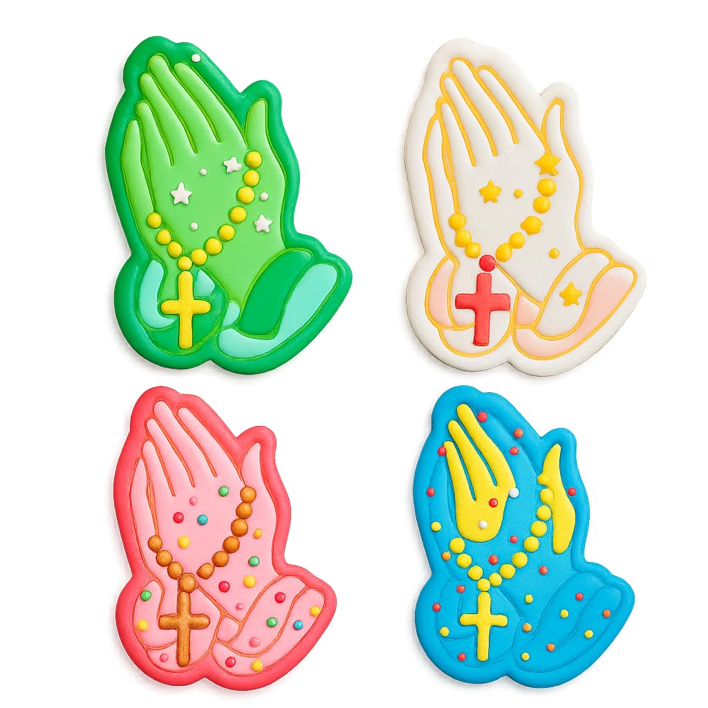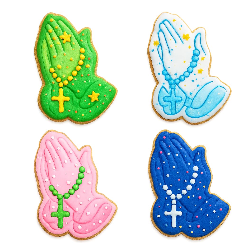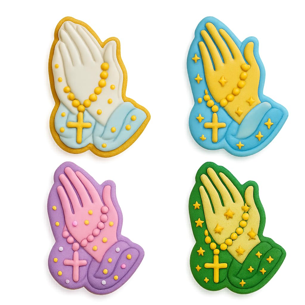 Color of the cookie cutter will be random and may differ from photos. Praying Hands with Rosary Cookie Cutter & Stamp 4x2.8" for Baking & Fondant Size: 2.8", 5 inch, 5mm. Praying Hands Rosary & 4x2.8" & brings instant personality to your bakesclean lines, bold imprint, and a silhouette that reads at a glance. Use it to batch cookies fast without losing definition. Perfect for school bake sales, plus birthday dessert tables. Compatible with sugar cookies, gingerbread, fondant, and soft craft materials like polymer clay and air-dry clay. Color cookie cutter will random differ from photos Bring touch inspiration your. Extra detail: Praying Hands Rosary & 4x2. For best results: Roll your dough to 5mm (1/5 inch) thickness, use non-raising dough for sharp details, and dip the cutter into flour before each cut to prevent sticking and ensure clean release. Hand wash only. Not dishwasher safe. Made in the USA.