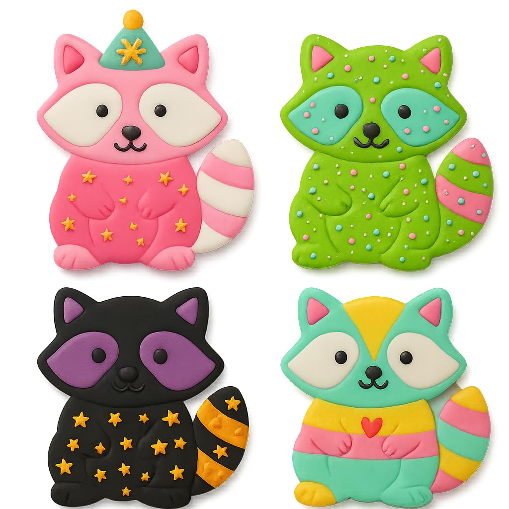 Color of the cookie cutter will be random and may differ from photos. Raccoon Cookie Cutter & Stamp 4x3.79" for Baking Fondant Clay Embosser Gifts Size: 3.79", 5 inch, 5mm. A playful raccoon & 4x3.79" clay embosser gifts that keeps edges sharp and decorating space generous for beginner and pro bakers. Its sturdy wall depth helps dough release cleanly so shapes keep their edges. Made for birthday dessert tables, school bake sales and more. Compatible with sugar cookies, gingerbread, fondant, and soft craft materials like polymer clay and air-dry clay. Color cookie cutter will random differ from photos Bring touch woodland magic. Extra detail: Raccoon & 4x3. For best results: Roll your dough to 5mm (1/5 inch) thickness, use non-raising dough for sharp details, and dip the cutter into flour before each cut to prevent sticking and ensure clean release. Hand wash only. Not dishwasher safe. Made in the USA.
