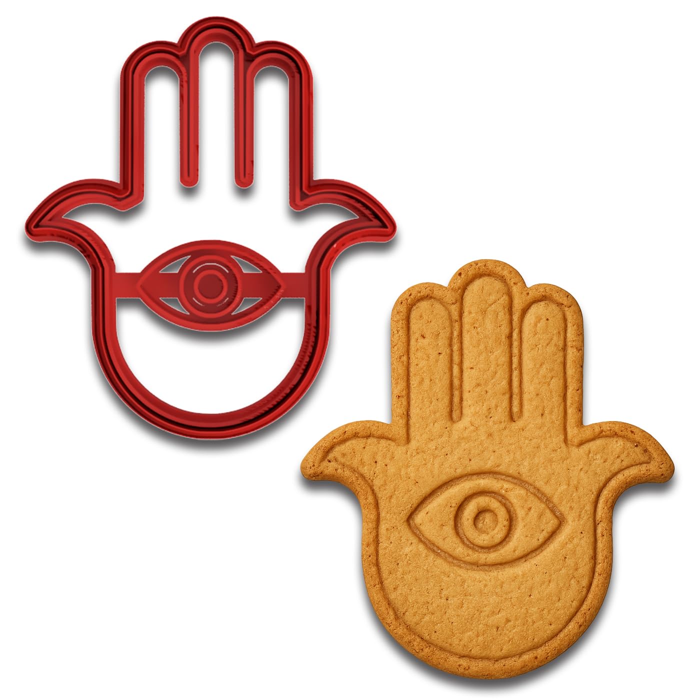 Protective Hamsa Hand Cookie Cutter & Stamp 4x3.49" for Baking & Fondant Clay